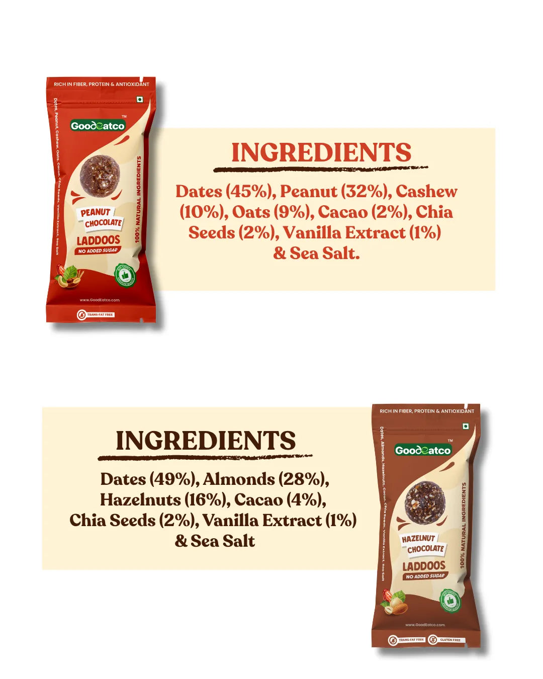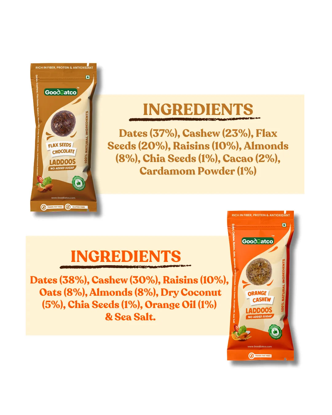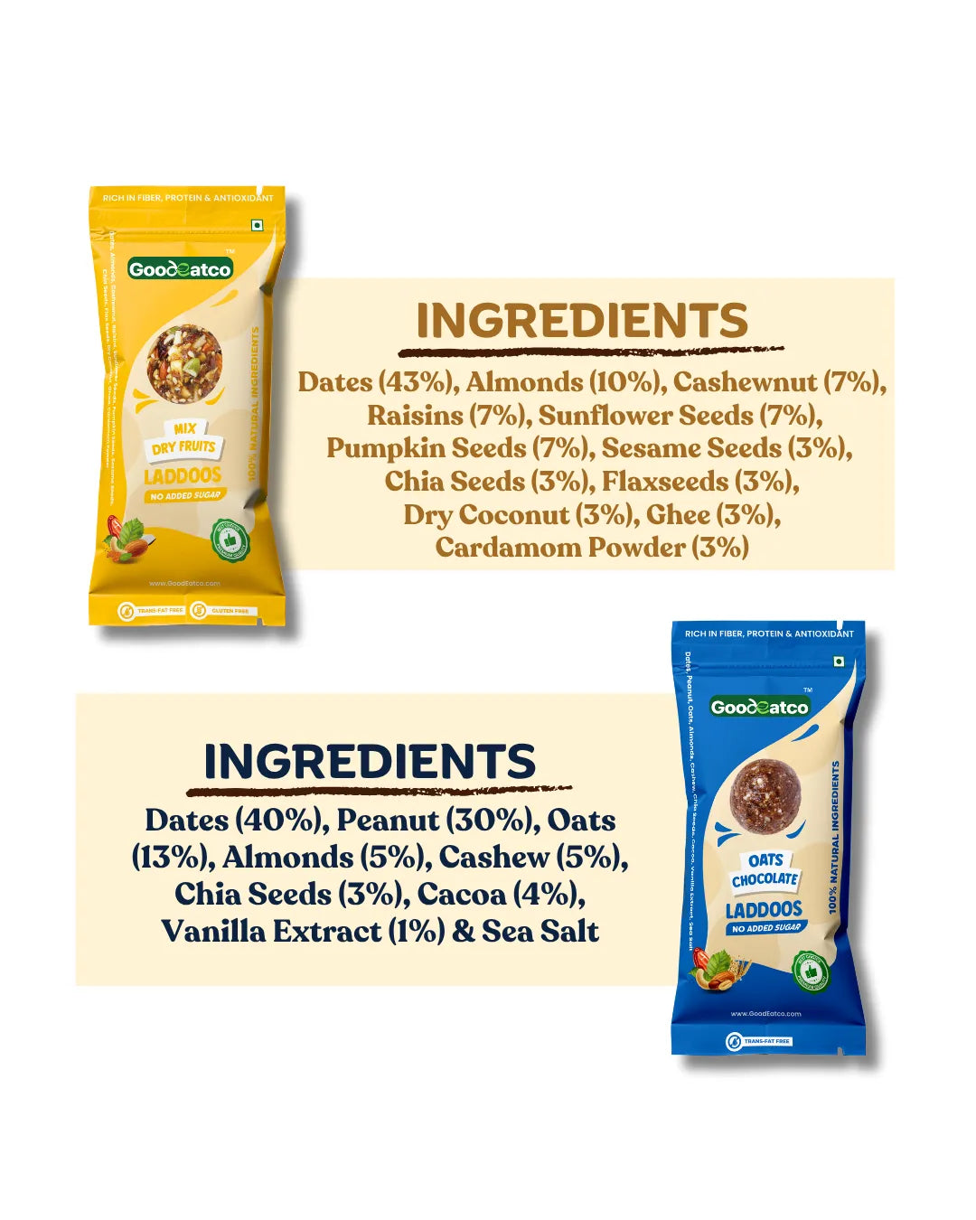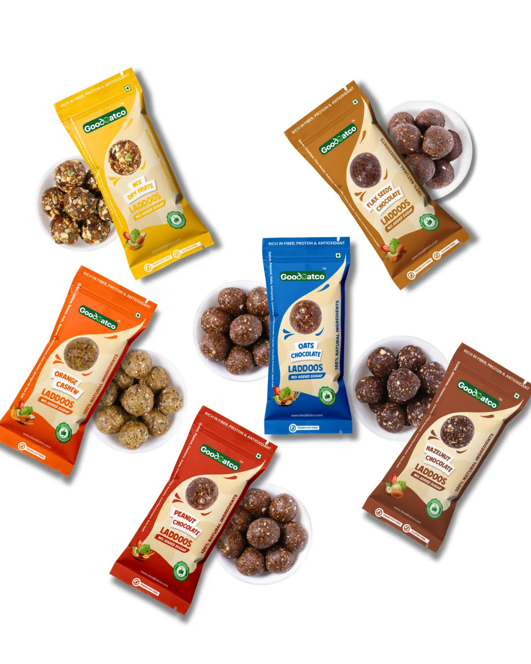Wholesome Variety. Guilt-Free Indulgence. One Delicious Box. Experience the perfect harmony of health, taste, and indulgence with the GoodEatco Assorted Laddoo Collection — a thoughtfully curated box of 24 bite-sized laddoos in 6 unique natural flavours. Each laddoo is handcrafted from premium dry fruits, nuts, seeds, and dates, offering the richness of traditional Indian mithai with the purity of modern, clean ingredients. Whether you’re looking for a healthy snack, a post-meal treat, or a thoughtful gift, this box is your go-to choice for everyday nourishment with a touch of indulgence.