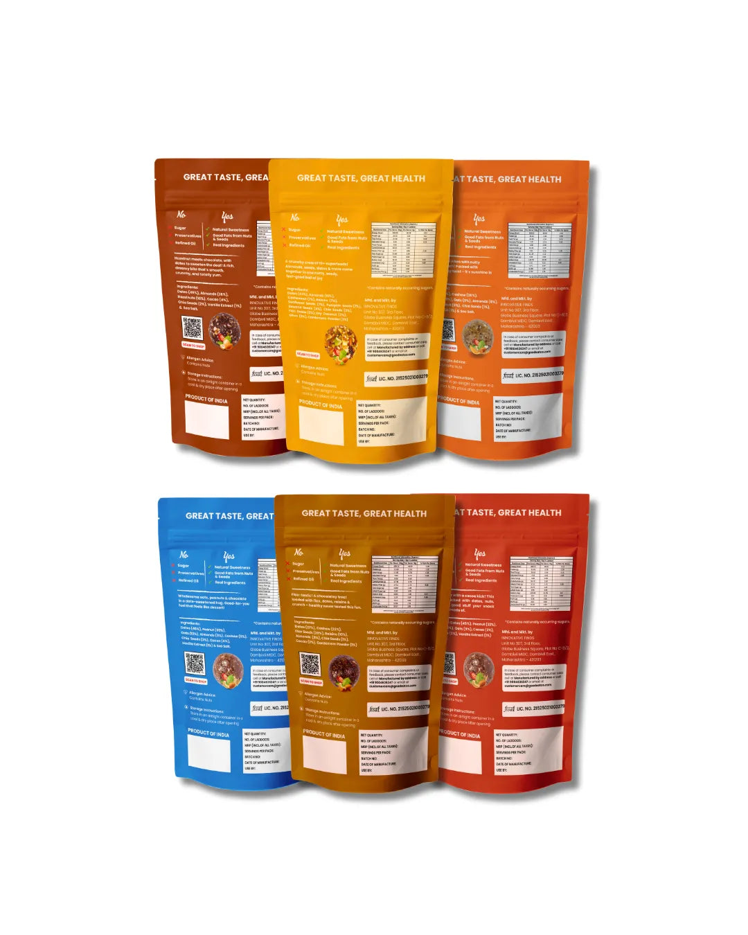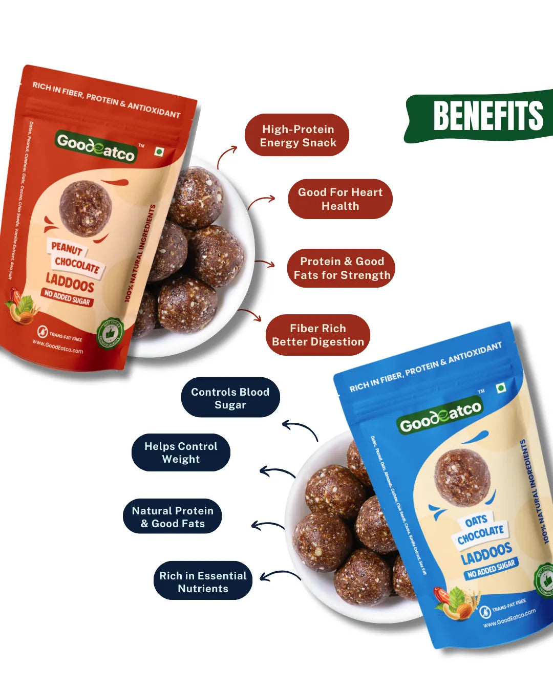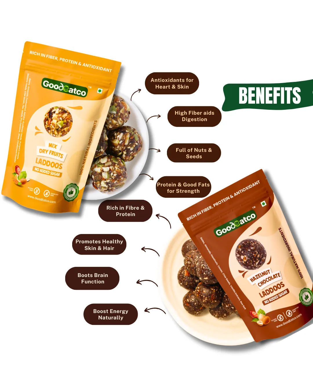 Wholesome Variety. Guilt-Free Indulgence. One Delicious Box. Experience the perfect harmony of health, taste, and indulgence with the GoodEatco Assorted Laddoo Collection — a thoughtfully curated box of 108 bite-sized laddoos in 6 unique natural flavours. Each laddoo is handcrafted from premium dry fruits, nuts, seeds, and dates, offering the richness of traditional Indian laddoos with the purity of modern, clean ingredients. Whether you’re looking for a healthy snack, a post-meal treat, or a thoughtful gift, this box is your go-to choice for everyday nourishment with a touch of indulgence.